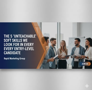 At Rapid Marketing Group, we believe we can teach almost anything. We’ve built a robust sales training program designed to turn eager beginners into top performers. We can teach you our systems, our scripts, and our closing techniques. But there are five fundamental qualities - five soft skills for sales - that can’t be taught in a classroom. These are the character traits for sales that truly define success, and they're what we're searching for in every single candidate.